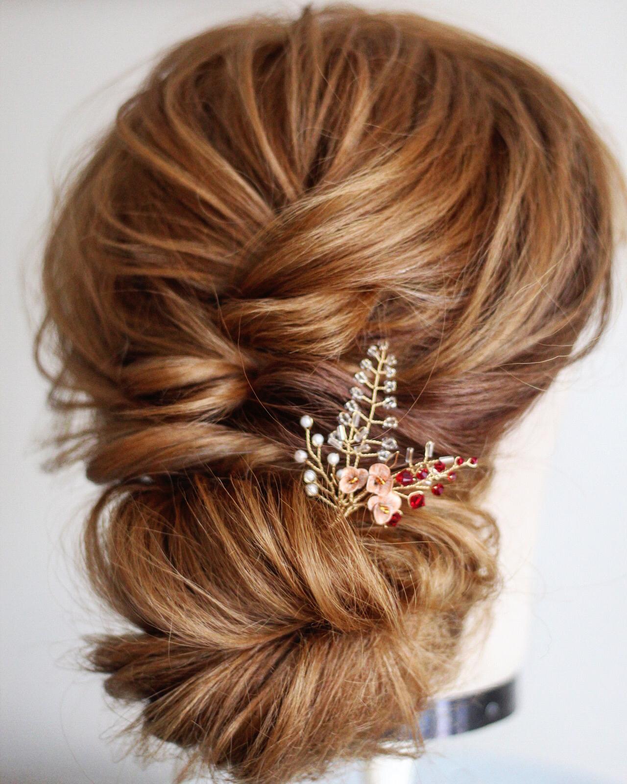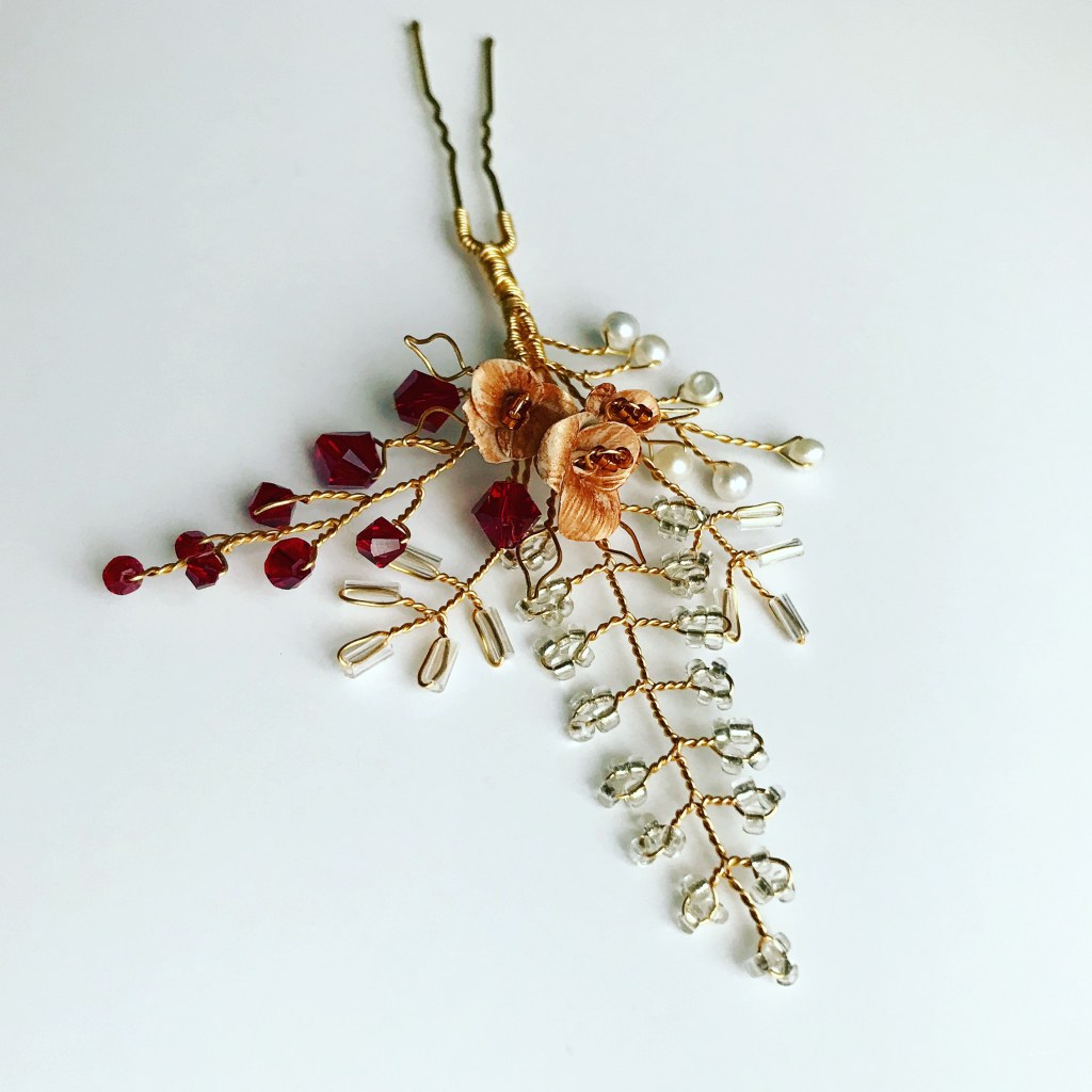 The Selma Pin. Perfect for adding a splash of colour to your bridal accessories. Created with handcrafted clay flowers, Swarovski Crystal, freshwater pearls and bead detailing.